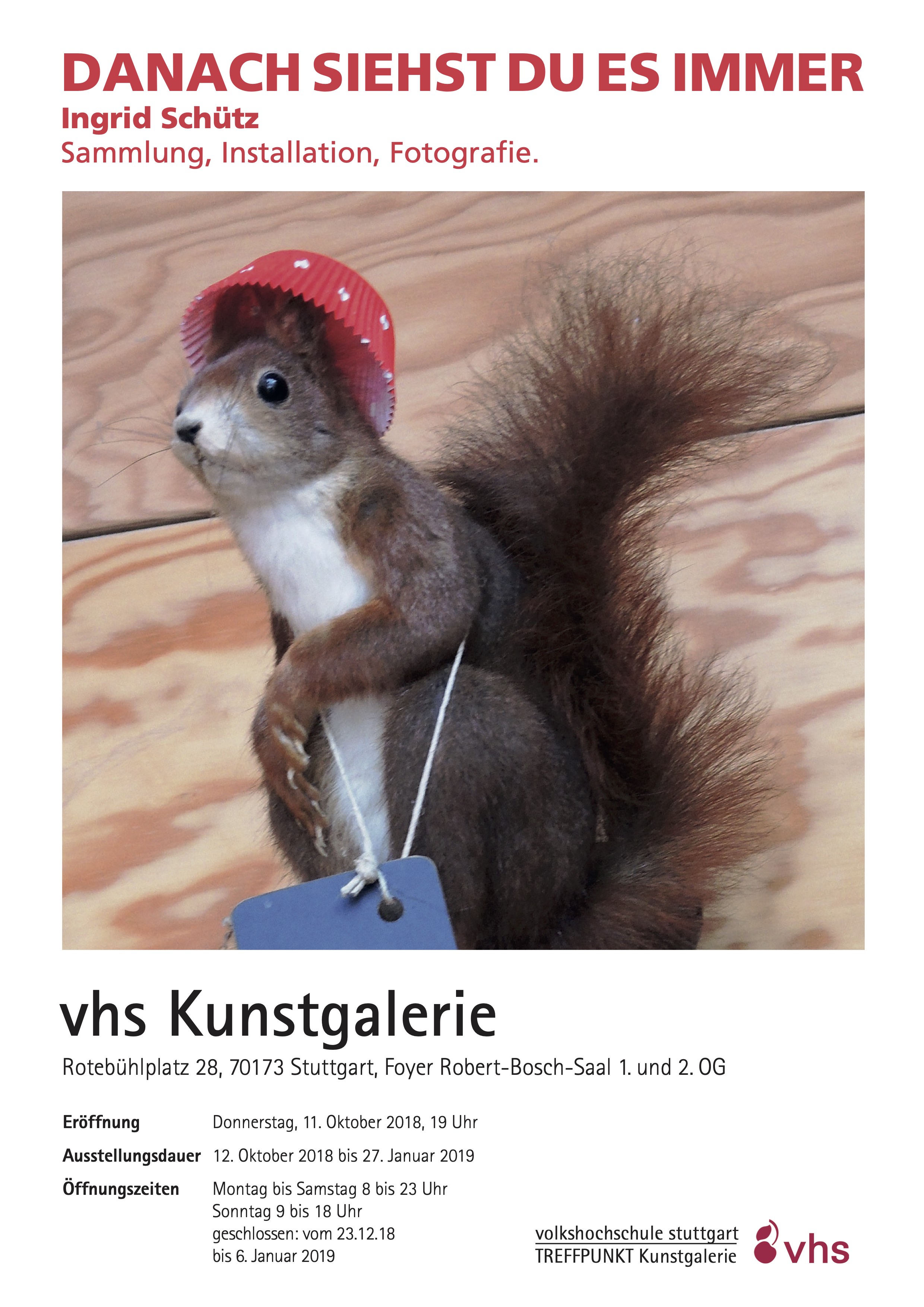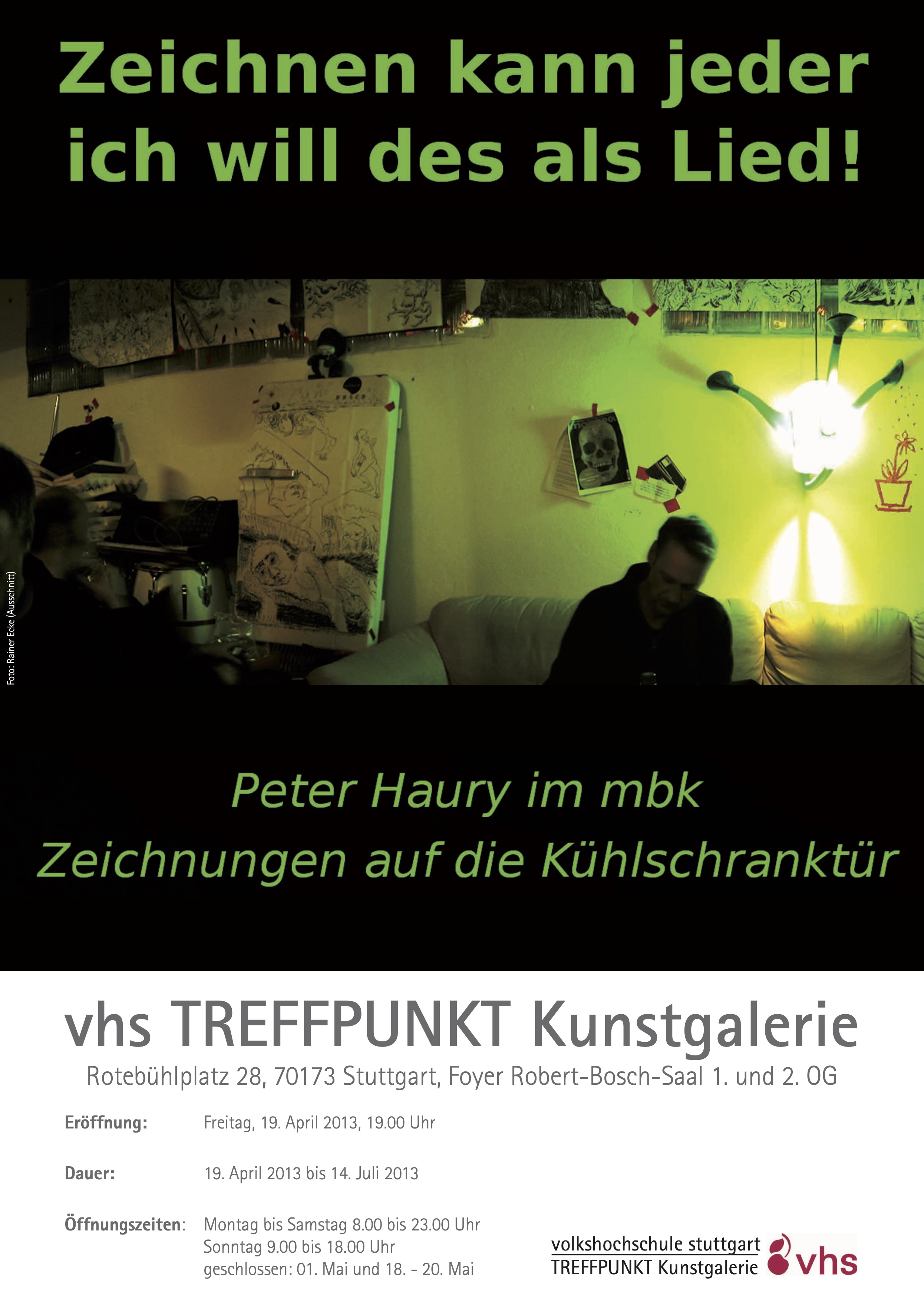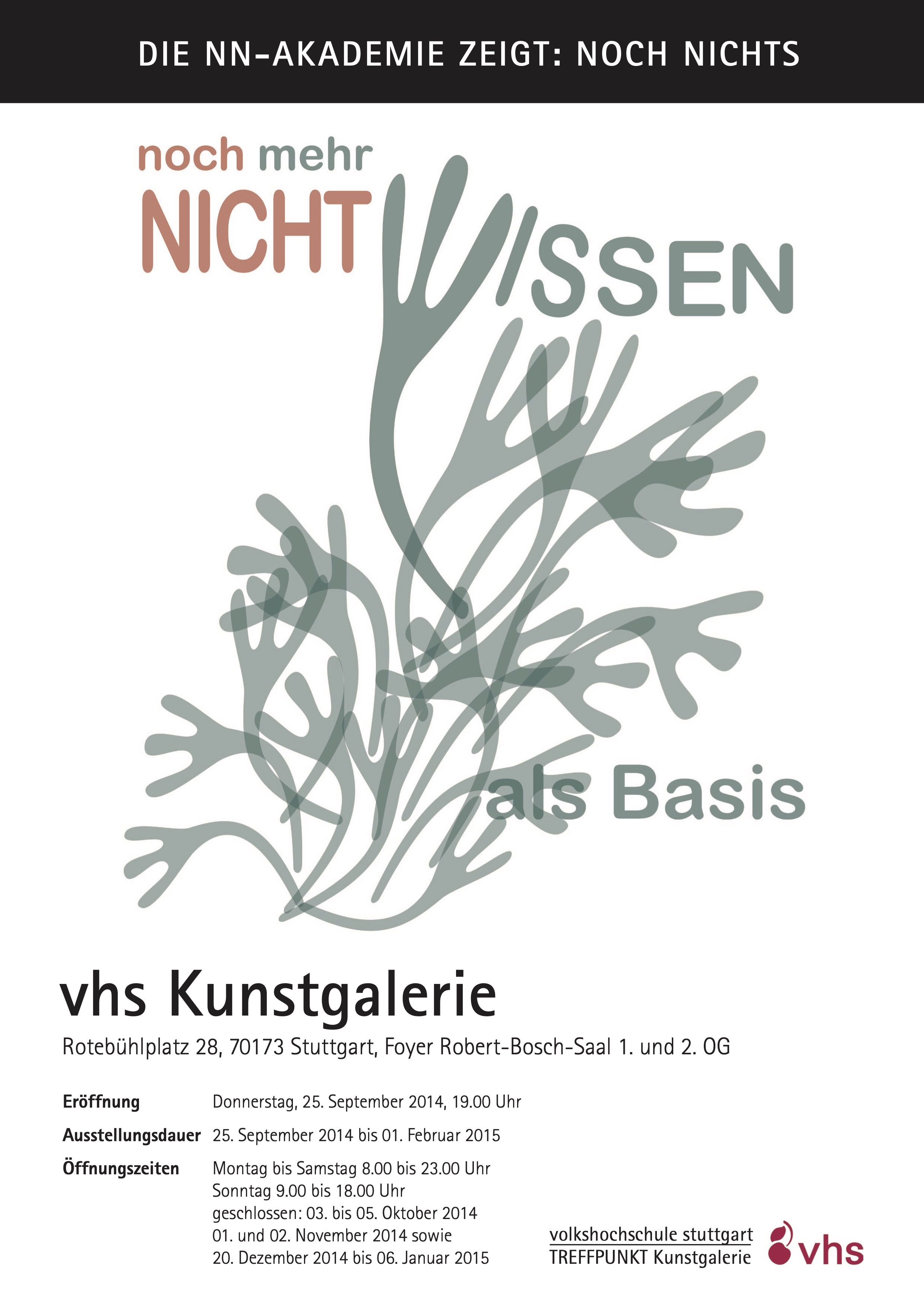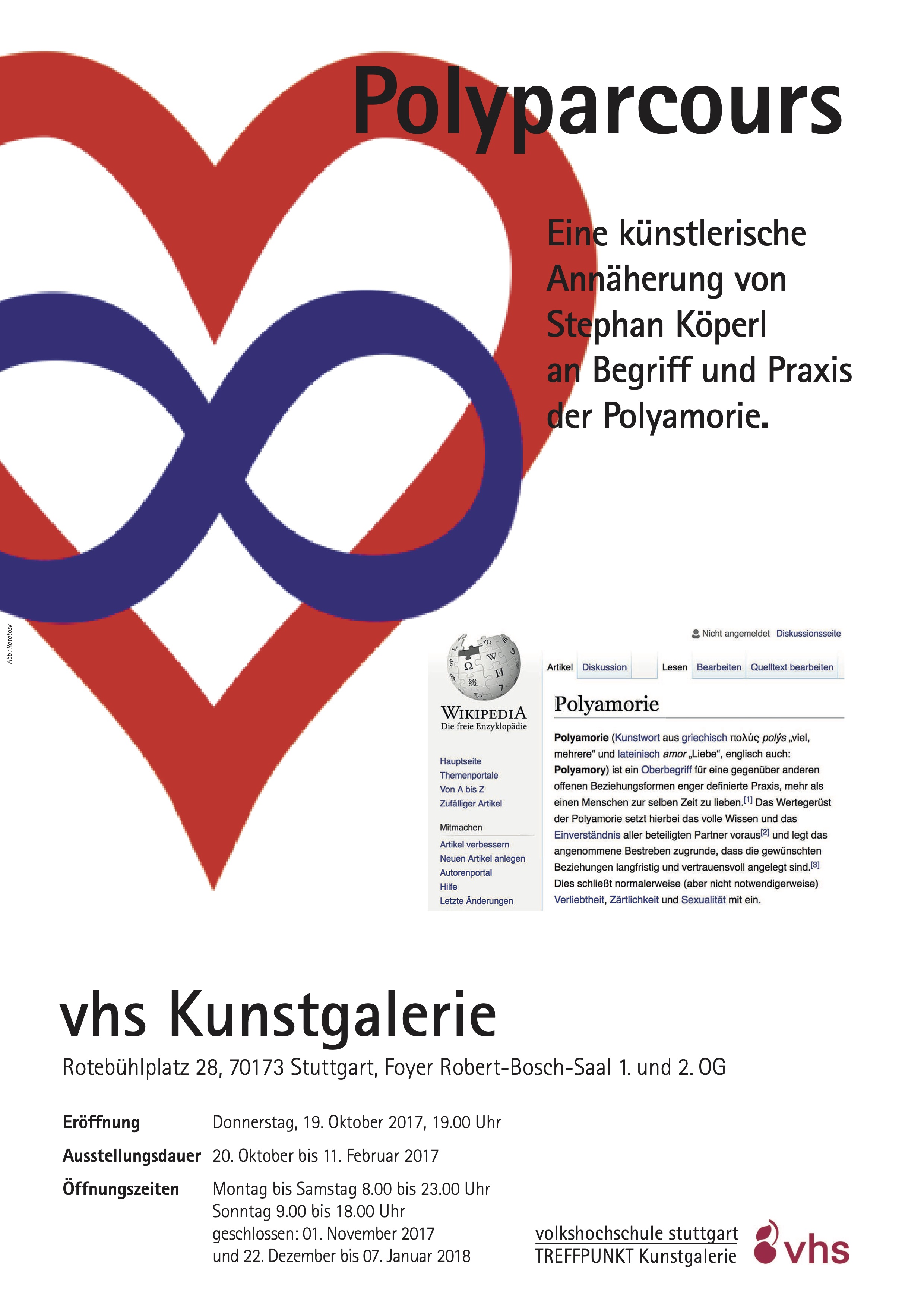 In der vhs Kunstgalerie im 1. und 2. OG des Treffpunkt Rotebühlplatz Stuttgart werden von mir 2 Ausstellungen pro Jahr kuratiert. Gezeigt werden Werke von KünstlerInnen die an der vhs im Fachbereich Kunst und Gestalten unterrichten oder unterrichtet haben, sowie von KünstlerInnen und Initiativen, deren Arbeiten an diesem Ort inspirierende Impulse geben.