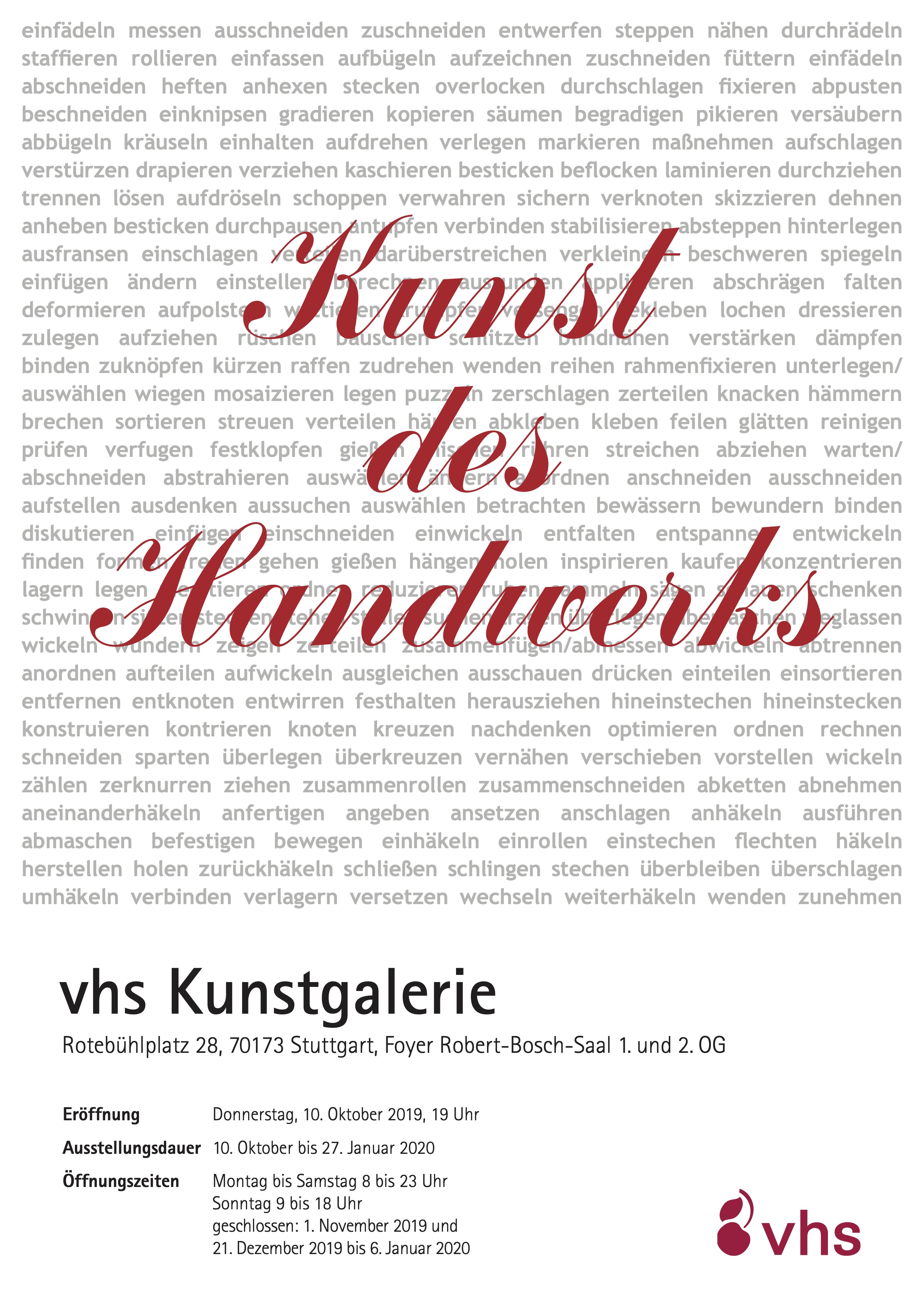 Zeigehandlungen vor Publikum in der leeren Galerie. Ausstellungseröffnung "Kunst des Handwerks", vhs Kunstgalerie im Rotebühlzentrum, 10.Okt.2019