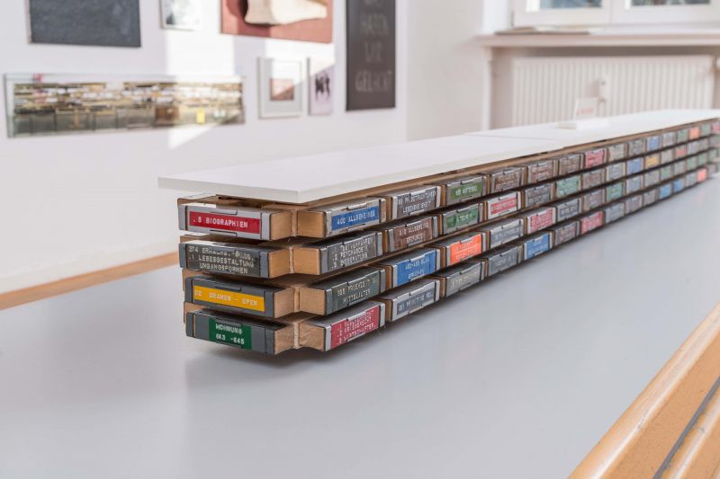 Eine Wortskulptur bestehend aus 135 Klassifikationsschildern aus dem früheren Bestand der Stadtbibliothek Nürtingen. Sämtliche Begriffe wurden von Harry Walter zu einem Text verarbeitet. Die zweiteilige Arbeit entstand anlässlich der Ausstellung 'public library' in der Amerika-Gedenkbibliothek in Berlin-Kreuzberg 2016.