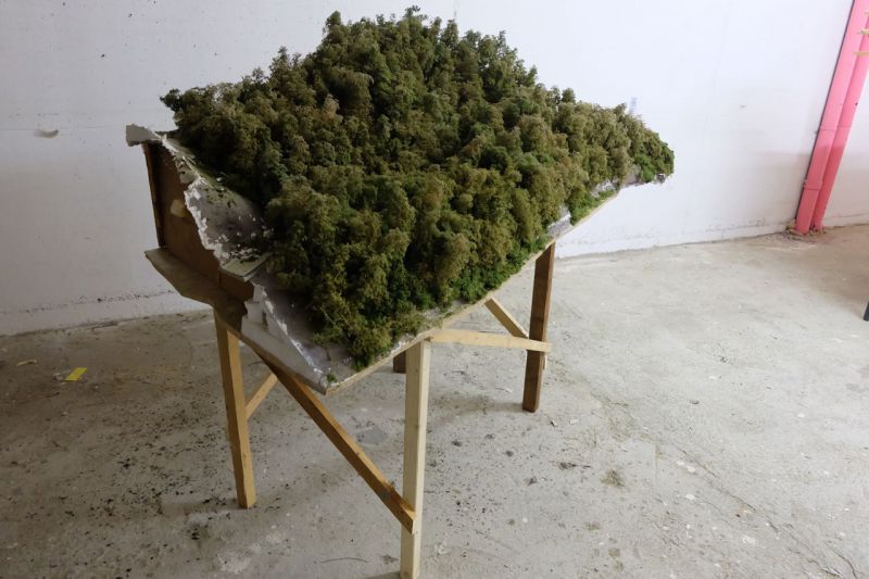 Der legendäre Modellbauer Wolfgang Frey arbeitete 30 Jahre lang an einem Modell der Stuttgarter Innenstadt und der Bahnanlagen von bisher nie da gewesener Detailtreue in einem verborgenen Raum eines S-Bahnhofes. Nach dem Tod Freys 2012 wurde die im Maßstab 1:160 angelegte und rund 200qm große Anlage verkauft, demontiert und zunächst in Herrenberg und seit März 2022 in Stuttgart öffentlich präsentiert. An ihrem ursprünglichen Standort in einem bunkerähnlichen Zwischengeschoss blieben zahlreiche Materialien und Relikte zurück - dieser wird von Begleitbüro SOUP als Projektraum genutzt. Aus dem zuvor unsichtbaren Baumaterial des Unterbaus der Modellanlage wurde hier eine Skulptur als Scheingrab (Kenotaph) zu Ehren des Modellbauers errichtet.